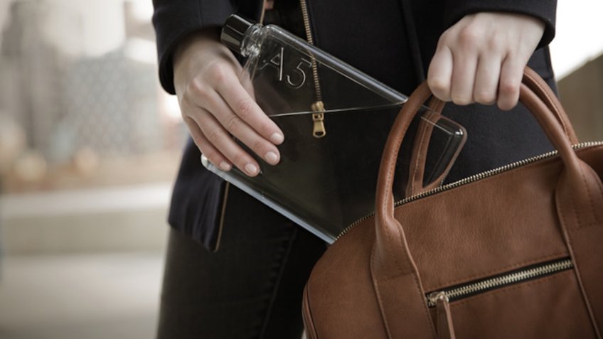 Garrafa de água plana, formato notebook A5